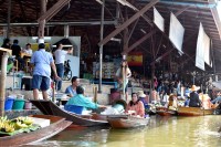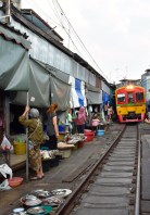Next up we headed out of town for two unique markets- a floating market and a train market. The floating market was a fun stop with kids after a day of touring temples. They liked being out on the boat and eating ALL the things. My two didn’t fight the entire tour. Worth all the money. Tour prices vary based on which stall. Don’t hesitate to ask your driver to go elsewhere if you find the prices too high. No need for add ons. All the shops carry the same stuff- touristy pieces.
